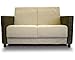 ●肘部分がラタン(籐)でできた、アジアンテイストいっぱいのラブソファー ●背もたれ部分をグッと手前に引っ張ると平らな状態になり、ベッドに変身する ●おそろいのクッション(2個)や、肘部分のカバーも付い