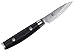 ●ヤクセルが自信をもってお届け プレミアム包丁シリーズ 「嵐 Ran」 「つくり手」の技が「つかい手」の誇りに応える! ●芯材に最高級といわれる「V金10号」を使用 刃物鋼としては、最高級といわれる「V金10号」を芯材にした33層のダマスカス鋼包丁。美しい模様は、芯材の両側を併せて32枚のステンレスで重ね合わせることにより浮かび上がる。鍛え上げられた包丁職人の技が光る仕様。錆びにくく、よく切れる。耐食性に優れているので、切れ味が持続 ●ハンドル素材はマイカルタ仕様 ハンドル素材のカンバスマイカルタは、カンバス生地を積層し樹脂加工したもので、独自の模様と強度に優れ、濡れた手でもすべりにくい。耐熱、耐水、耐衝撃性に優れているため、高級ポケットナイフなどにも使われている。使うごとに手に馴染み、熱湯消毒も可能。口金、尻金は錆びに強い18-8ステンレス製 ●用途 皮むき用の小型のナイフ ※刃部の模様は一本一本手作業で仕上げている為、一本一本異なり、商品画像とも異なります ※砥石は、合成中砥石(#1000位)をご使用ください