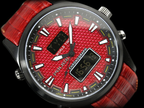 - 参考上代28350円の40%OFF!!国内未発売カラー緊急数量限定入荷!!【POLICE TIMEPIECES】ポリスアナログ×デジタルコンビネーションメンズ腕時計 ミッションブラックケース×レッドダイアルレッドレザー×オレンジステッチベルト[PL11180JSB-16]